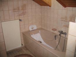 Das Badezimmer mit Dusche, Badewanne und WC | Die Küche mit Backofen, Spülmaschine, Kühlschrank und kompletter Einrichtung | |